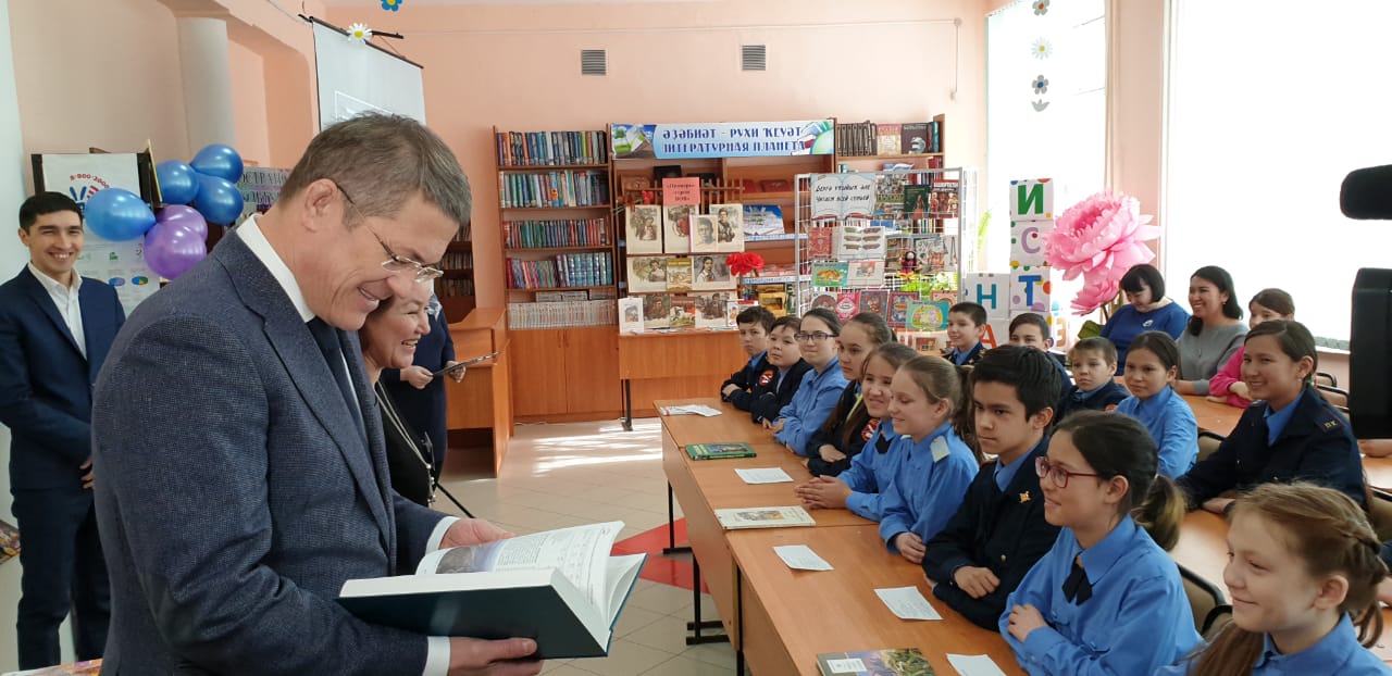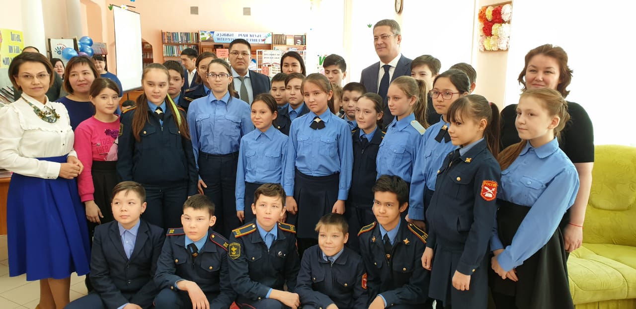 27.02. 2019. Врио Главы Республики Башкортостан Радий Хабиров и учащиеся взвода 6 "А" класса.