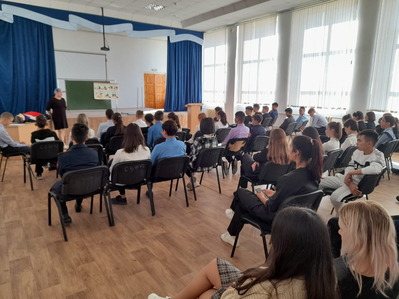 В  ходе мероприятия уполномоченный по ГО и ЧС школы Сабирова Р.З. рассказала учащимся, какую угрозу для человечества представляет терроризм, разъяснила ребятам, что понятие «терроризм» тесно связано с понятием «экстремизм». Сабирова Р.З. в своем выступлении  ознакомила  учащихся об экстремистских проявлениях в современном мире и ответственности, предусмотренной законодательством за преступления экстремистского и террористического характера. Для наглядности ребятам были показаны изображения, жетоны, футболки, скриншоты из социальных сетей с запрещенными изображениями, за распространение которых граждане были привлечены к административной ответственности.